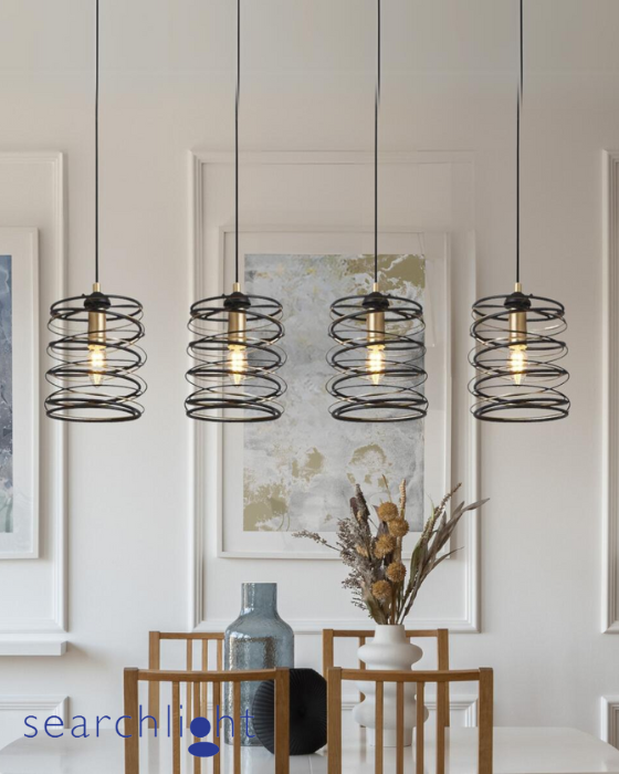 Searchlight Spring 4lt Black Metal & Gold Bar Pendant