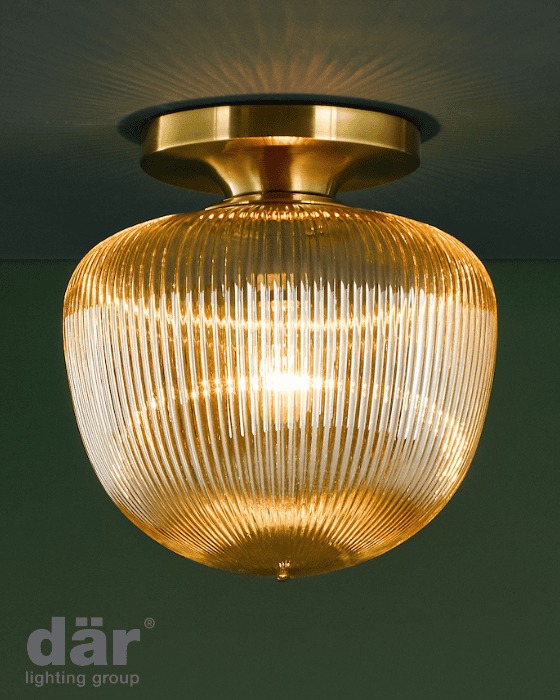 Dar Lighting Abrielle Brushed Bronze & Amber Ribbed Glass Flush