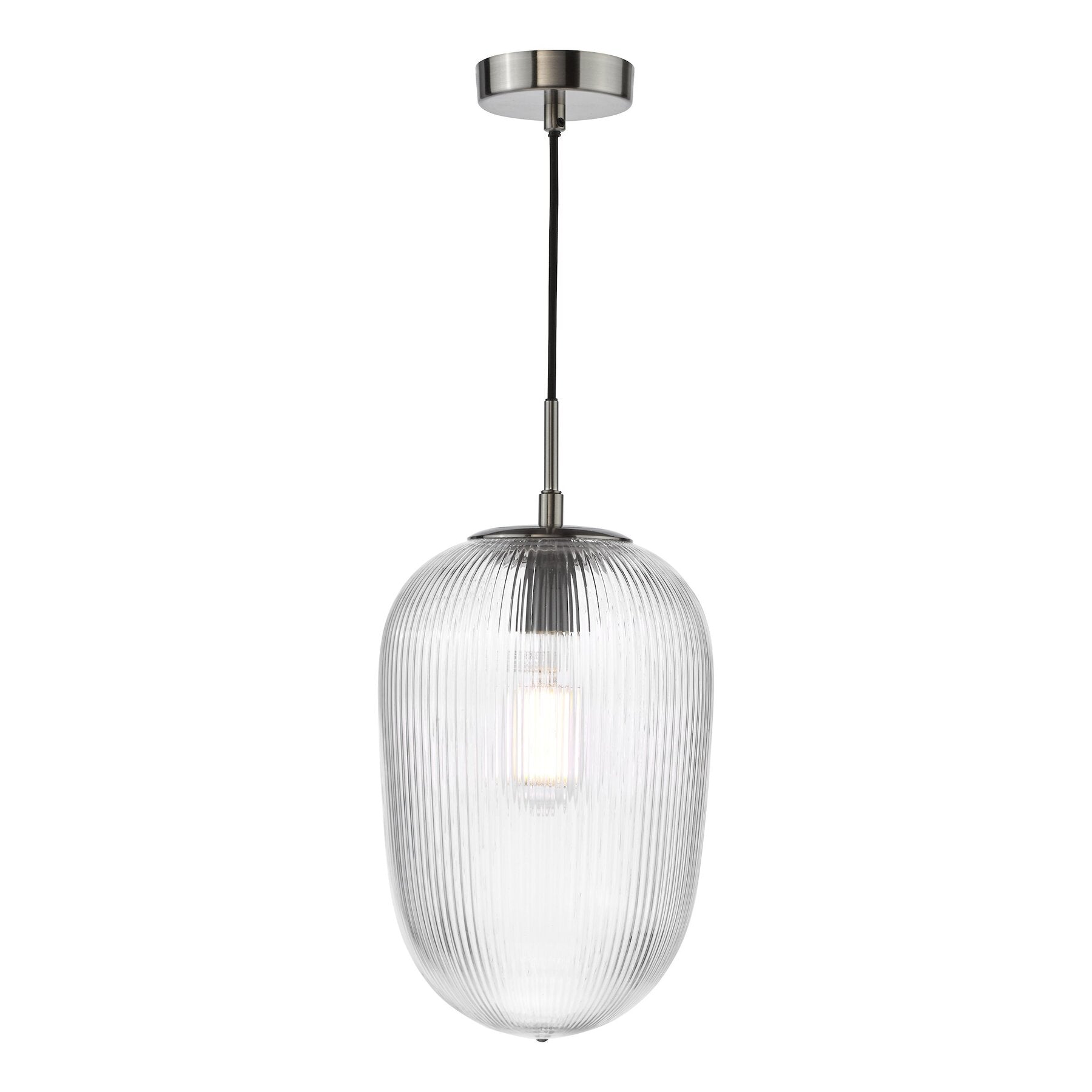 Dar Lighting Abrielle Polished Nickel & Ribbed Glass Pendant