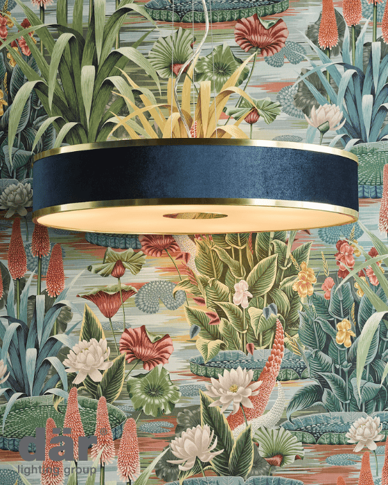 Illuminate your space with this contemporary stunner. The Alvaro 6 Light Pendant features a brushed brass frame and frosted acrylic diffusers that emit a warm glow. Velvet shades in rich navy blue add a touch of drama and texture. The Alvaro allows you to set the perfect mood, whether it’s a cosy evening at home or an elegant dinner party.