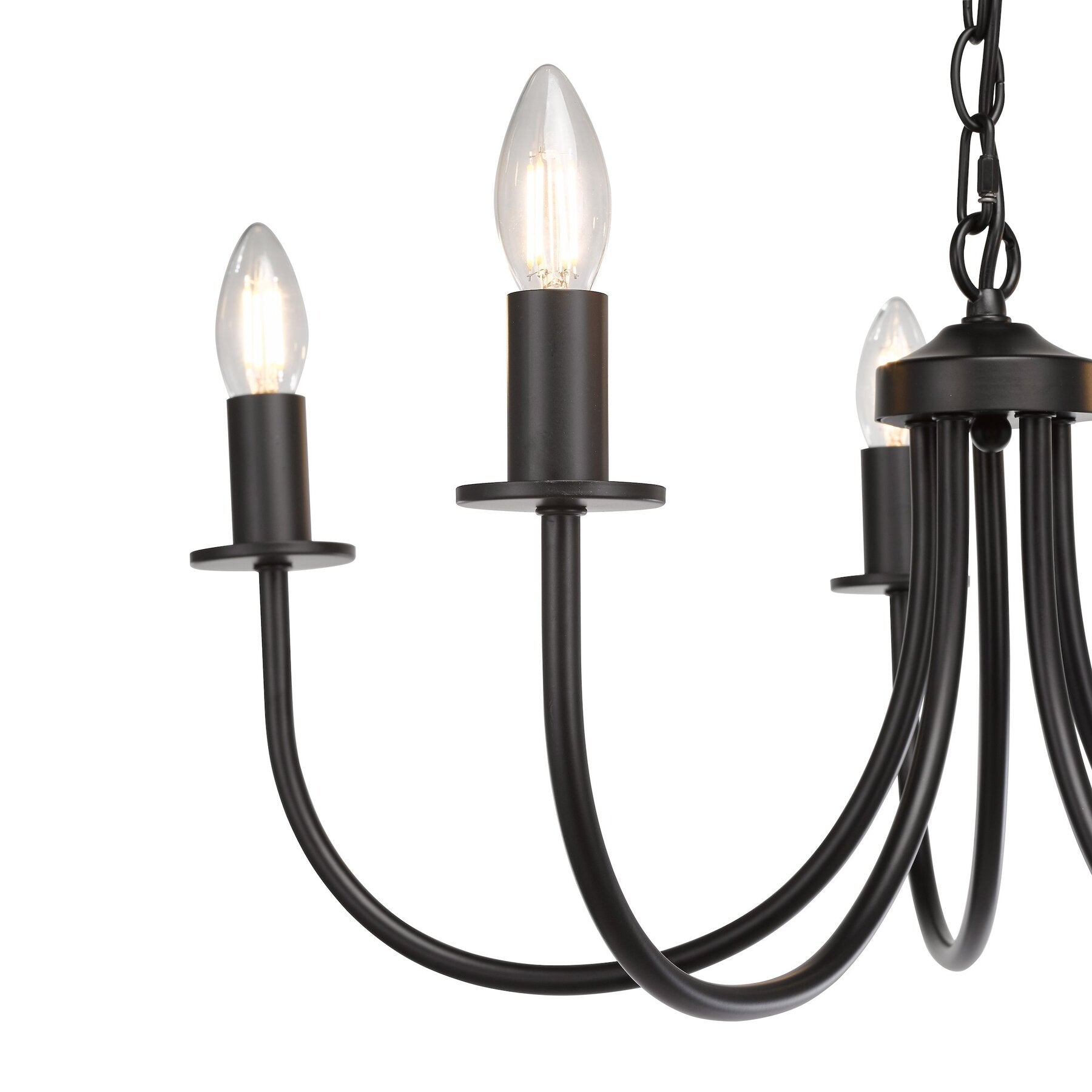 The Becca Pendant Light from dar Lighting is a versatile black chandelier with five sweeping arms for an elegant silhouette. Sleek and modern on its own, it can be customised with shades up to 20cm, ideal for dining rooms or entryways. Stylish and adaptable, it’s designed to suit any décor.