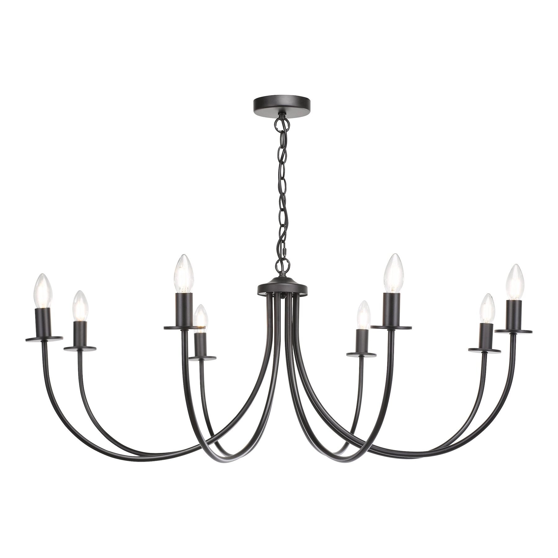 The Becca pendant light from Dar Lighting is a bold black ceiling fixture with a one-metre diameter and eight sweeping arms. Its matte finish exudes contemporary elegance, while versatile styling lets you use it with or without shades up to 20cm. Complete with 2m of chain for higher ceilings, this striking pendant is designed to be the centrepiece of any spacious room.