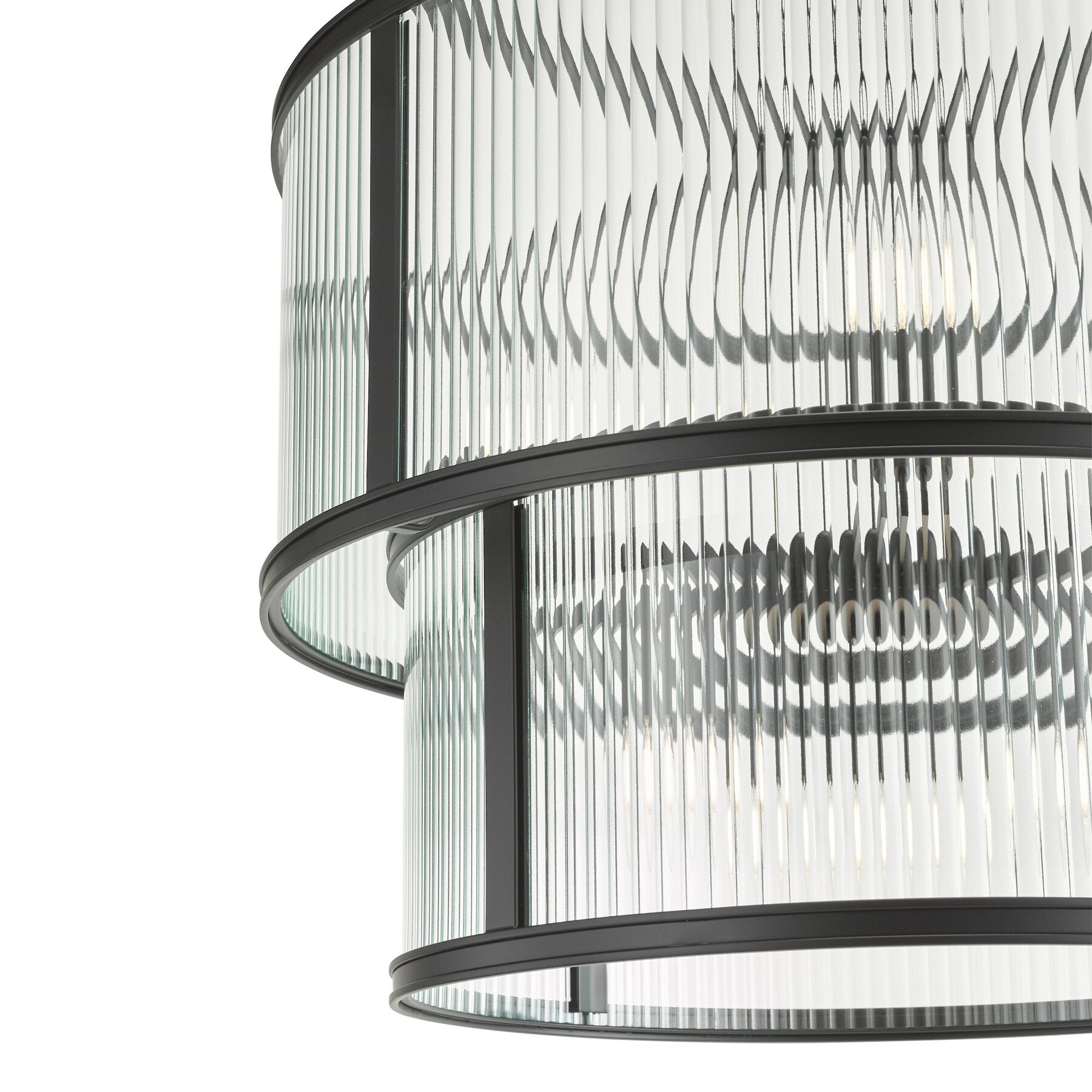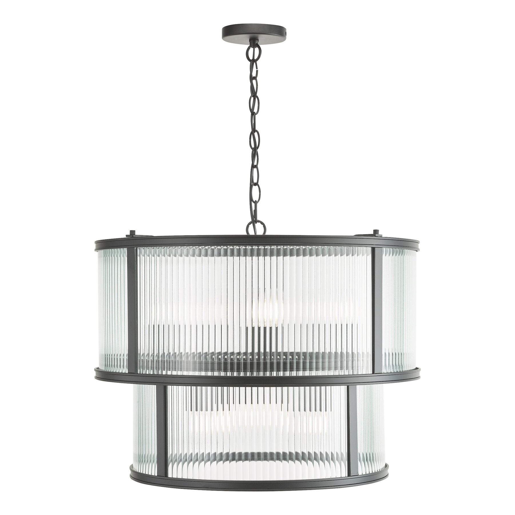 Dar Lighting Bianka 6 Light Matt Black & Ribbed Glass Pendant