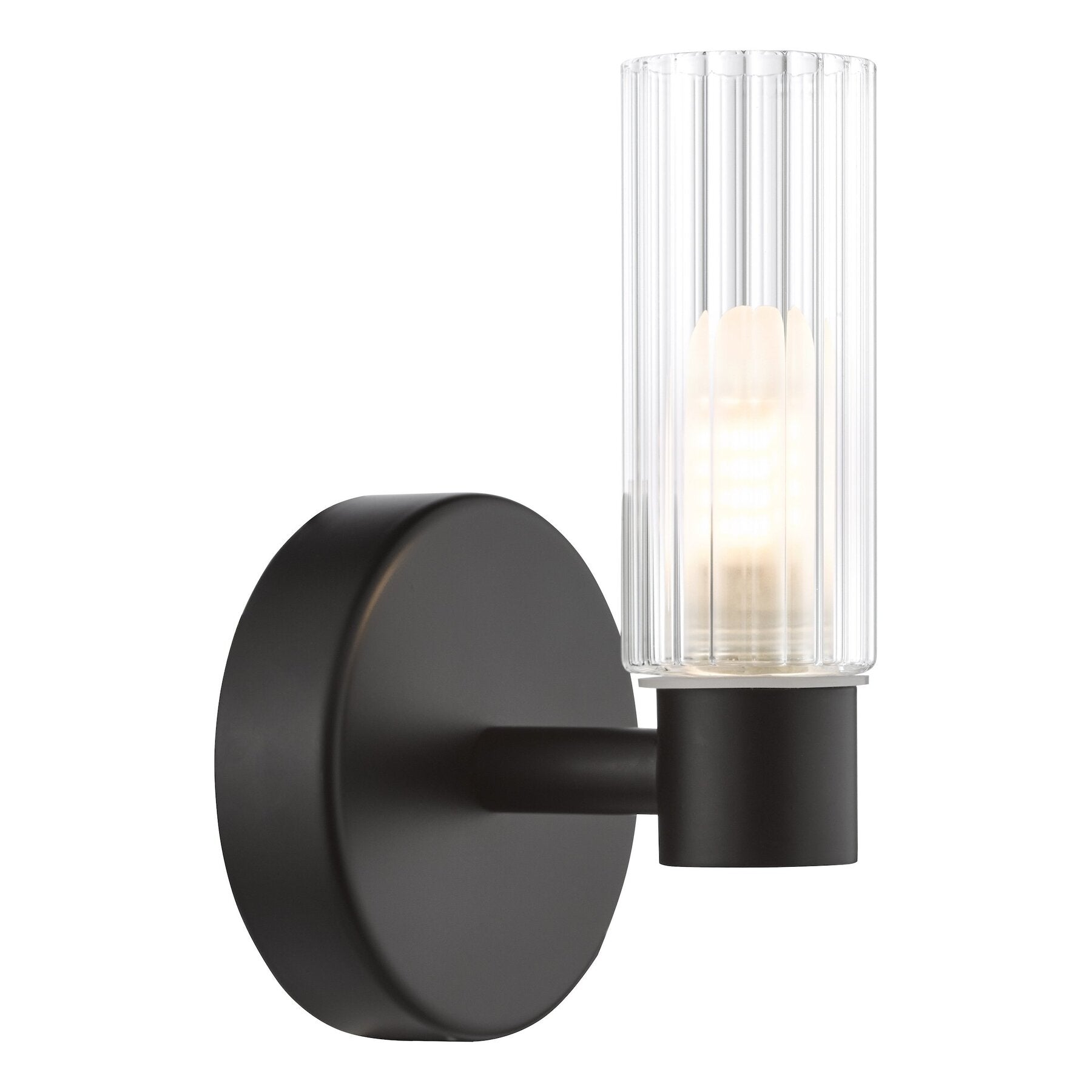 Dar Lighting Bolton Bathroom IP44 Matt Black & Ribbed Glass Wall Light