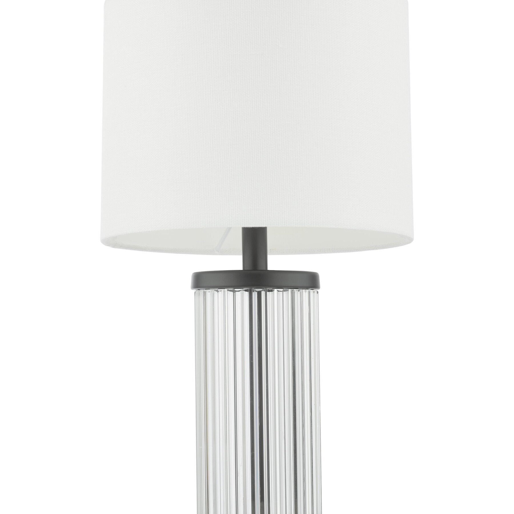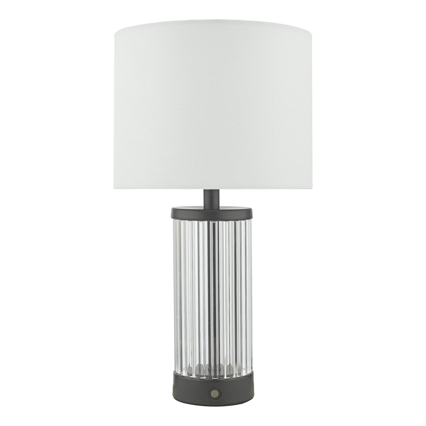The Enrico Table Lamp - a classic piece that will elevate any space. The sleek satin black finish and ribbed glass base create a stylish and timeless look that makes it a perfect addition to various decor schemes. The addition of a white linen shade provides a soft and subtle contrast, which complements the overall design beautifully. This table lamp is not only stylish but also practical, as it's a portable, rechargeable LED lamp, so you won't be limited to a nearby electrical outlet.