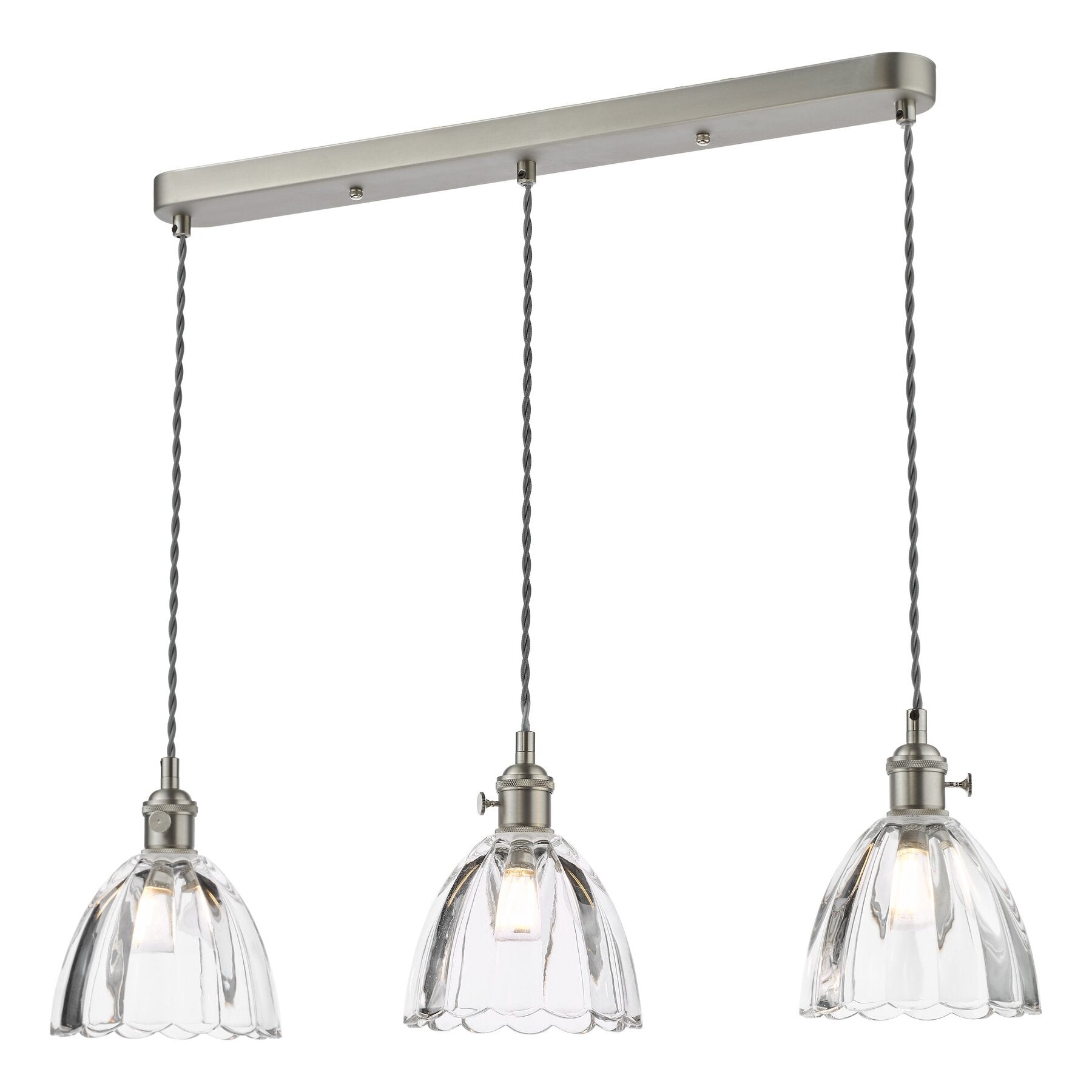 Dar Lighting Hadano 3 Light Antique Chrome & Scalloped Bell Glass Bar Pendant