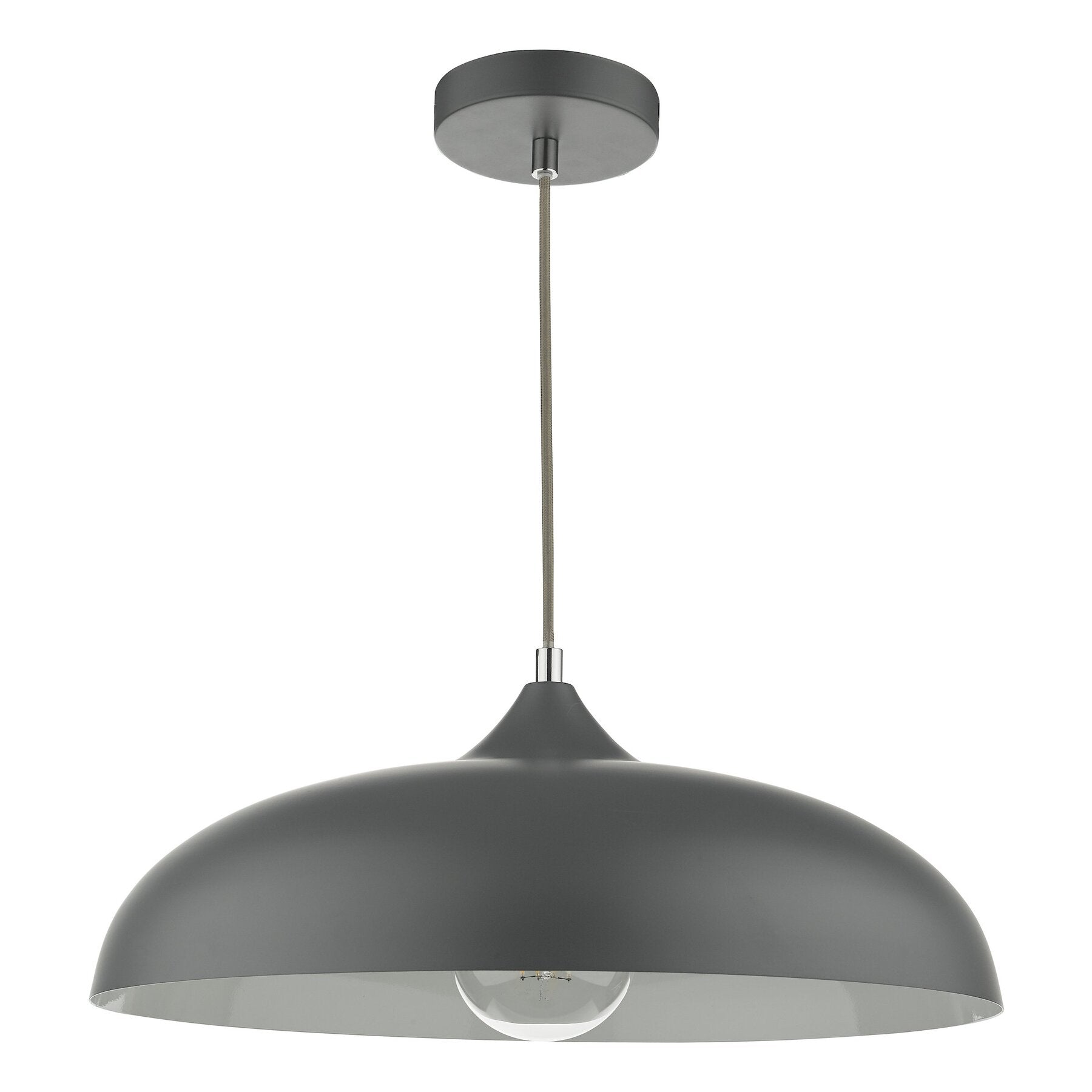 The Kaelan single pendant has a subtle and elegant curved dome finished in a modern matt mid-grey with small polished chrome details. Complete with co-ordinating grey braided cable which is height adjustable on installation to a minimum height of 30cm (max 116cm), making it suitable for most ceiling heights.