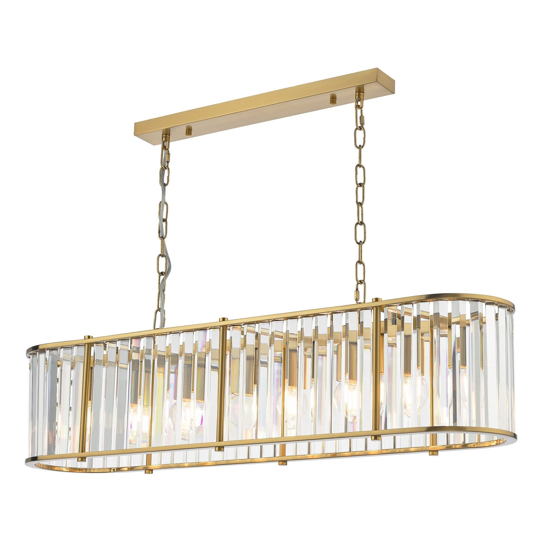 Dar Lighting Kiran 7 Light Natural Brass & Crystal Bar Pendant