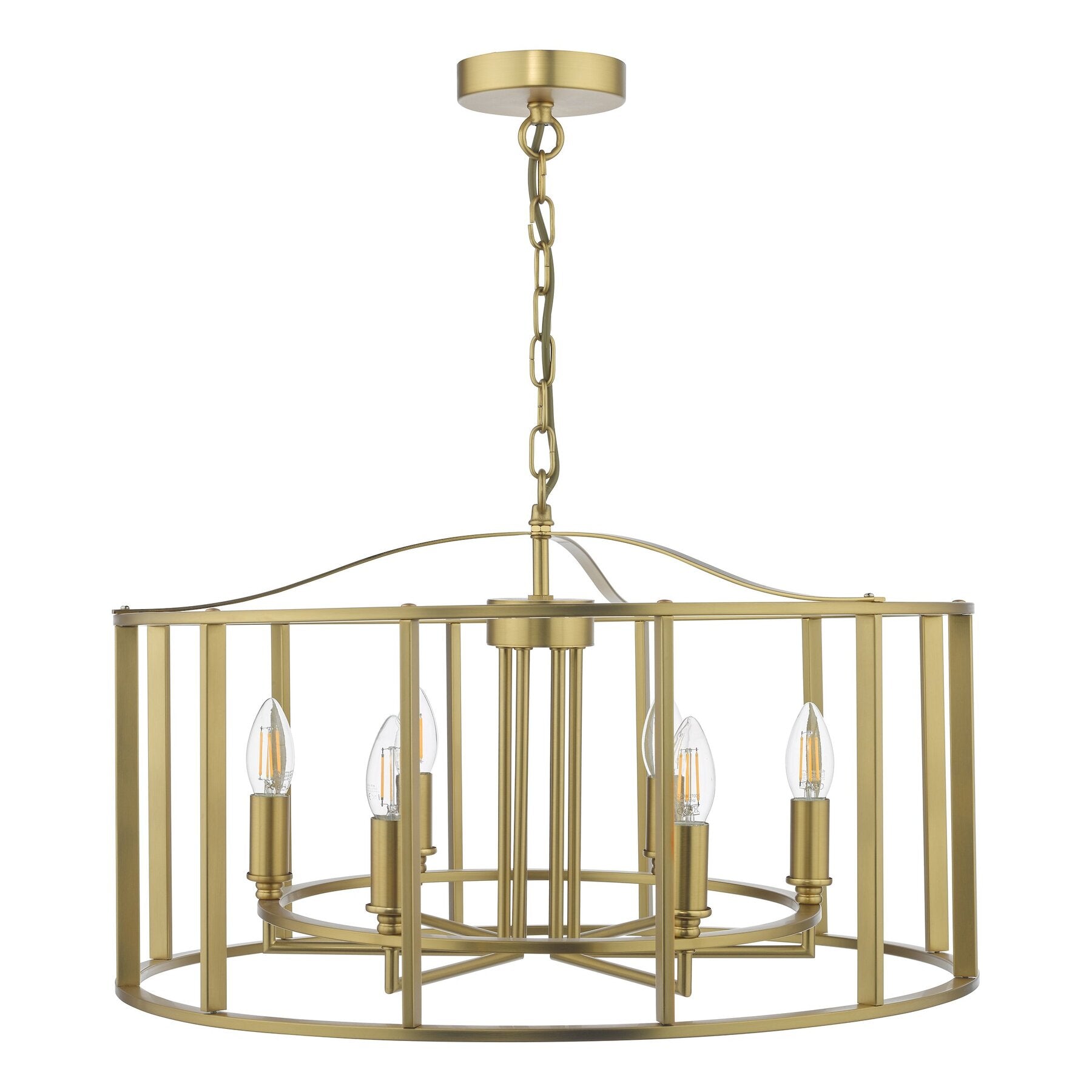 The MYKA 6 light finished in bronze, is a grand fitting encased in a decorative cage with a curved top. This fitting looks wonderful with our decorative filament candle lamps and is height adjustable on installation.
