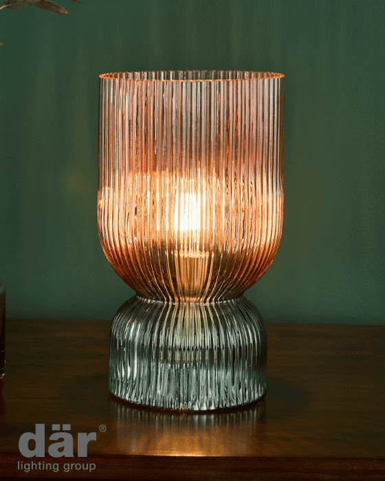 Dar Lighting Rhubarb Pink & Green Ribbed Glass Table Lamp