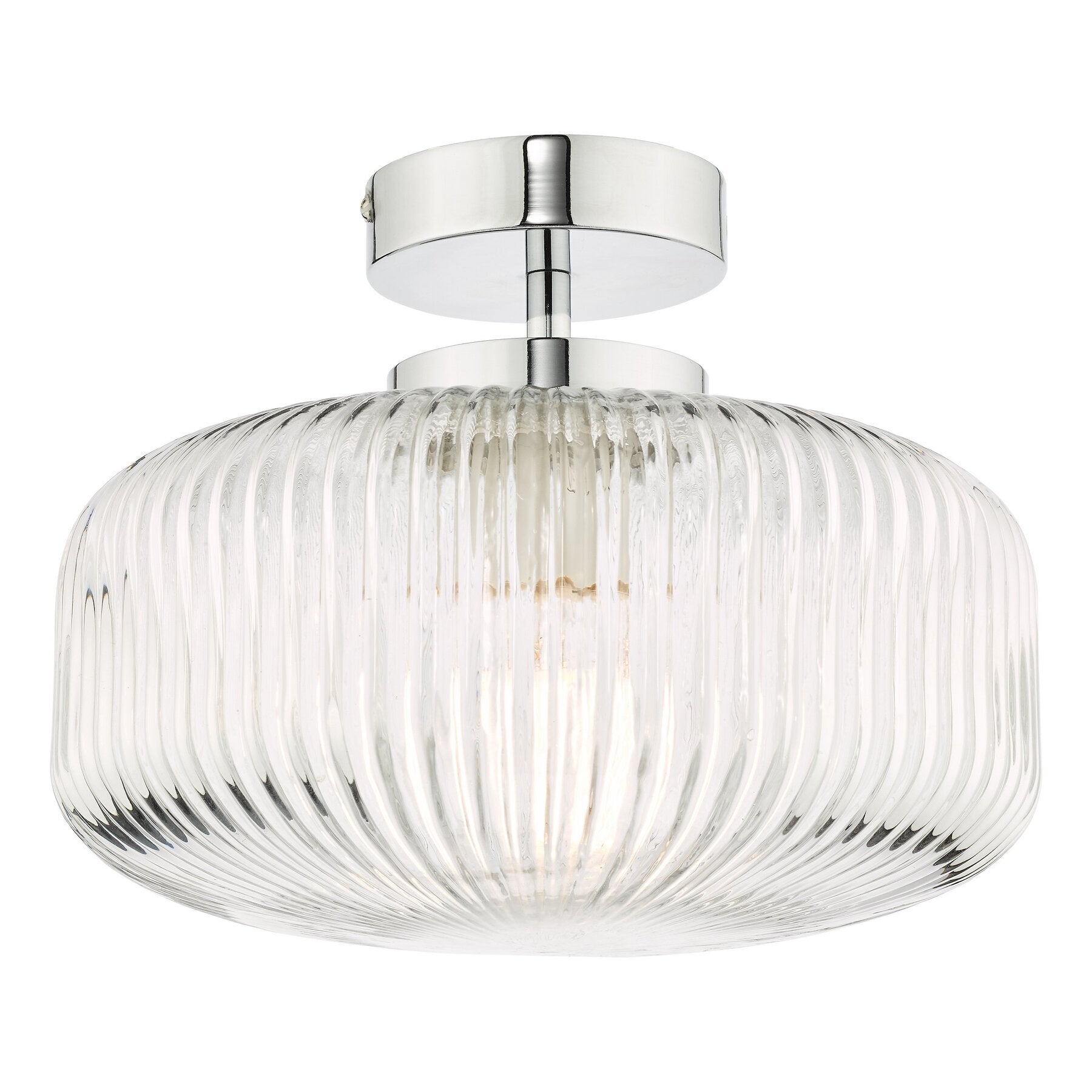 Dar Lighting Riva Bathroom IP44 Ribbed Glass & Polished Chrome Semi Flush