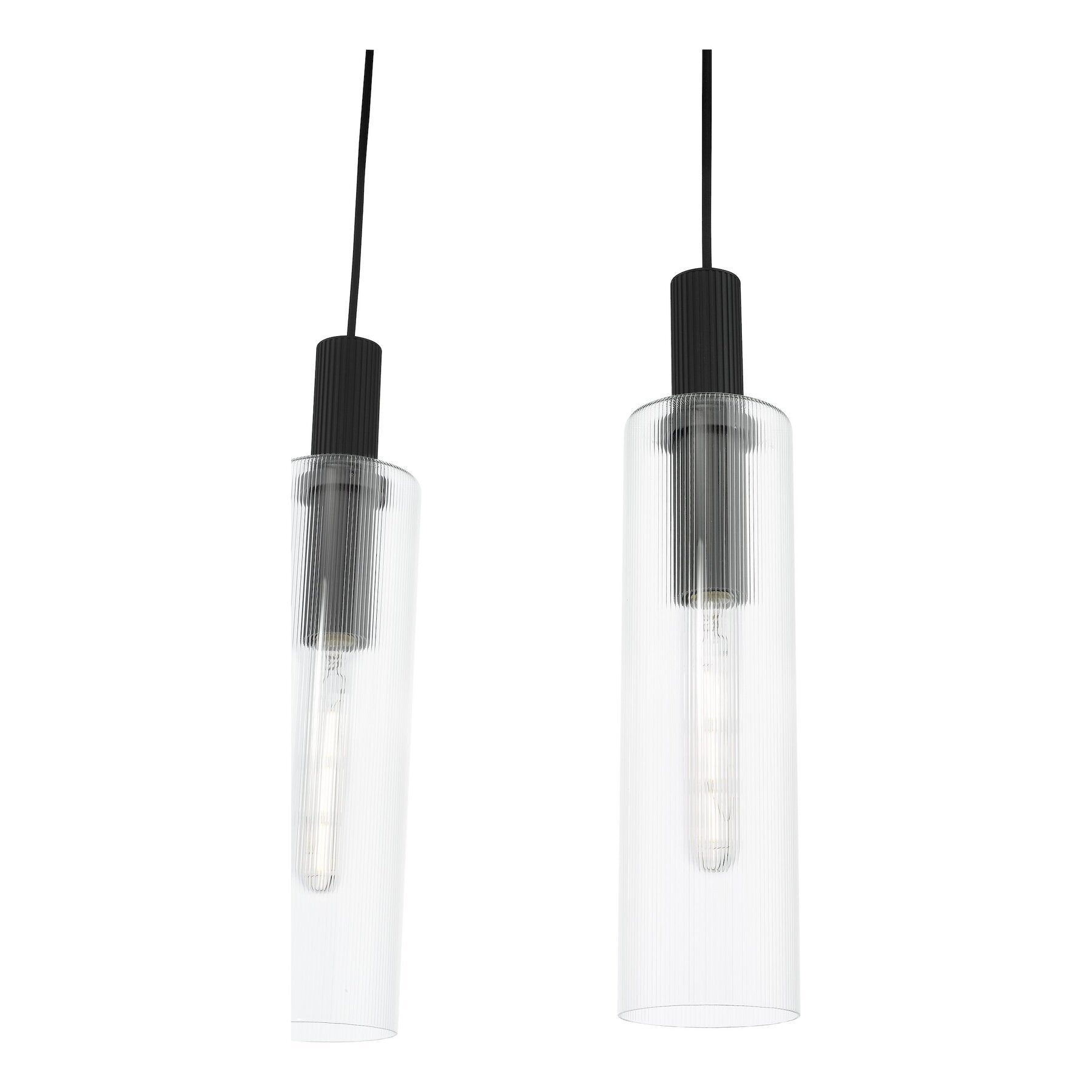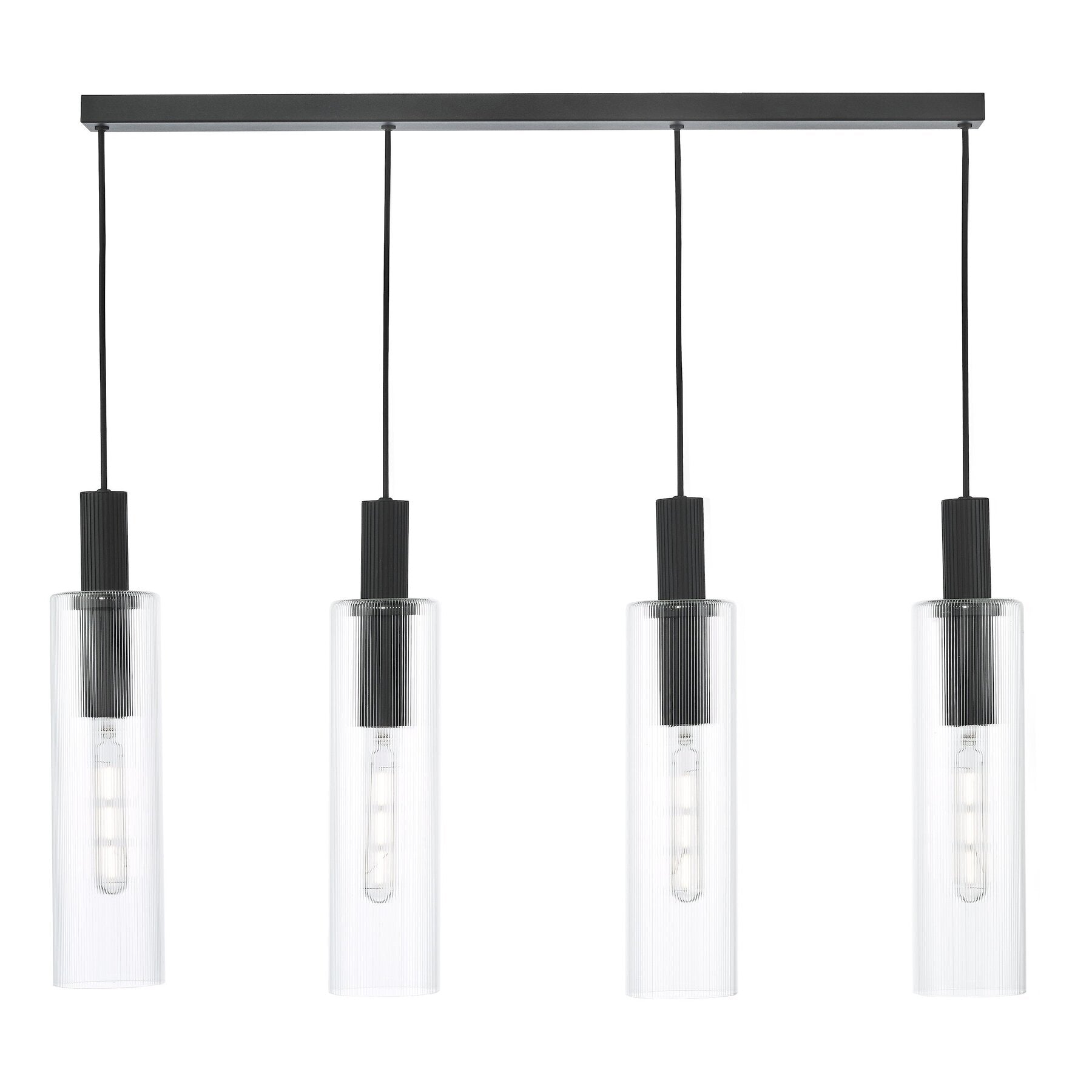 Dar Lighting Ruben 4 Light Satin Black & Ribbed Glass Bar Pendant