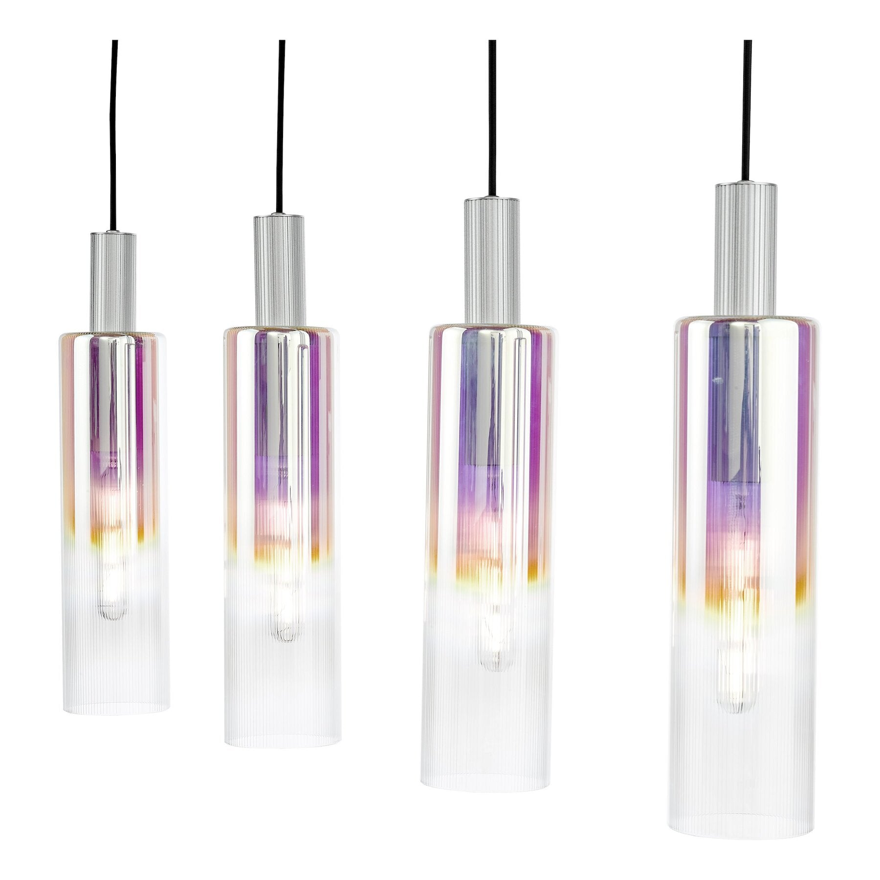 Dar Lighting Ruben 4 Light Satin Silver & Ribbed Iridised Glass Bar Pendant