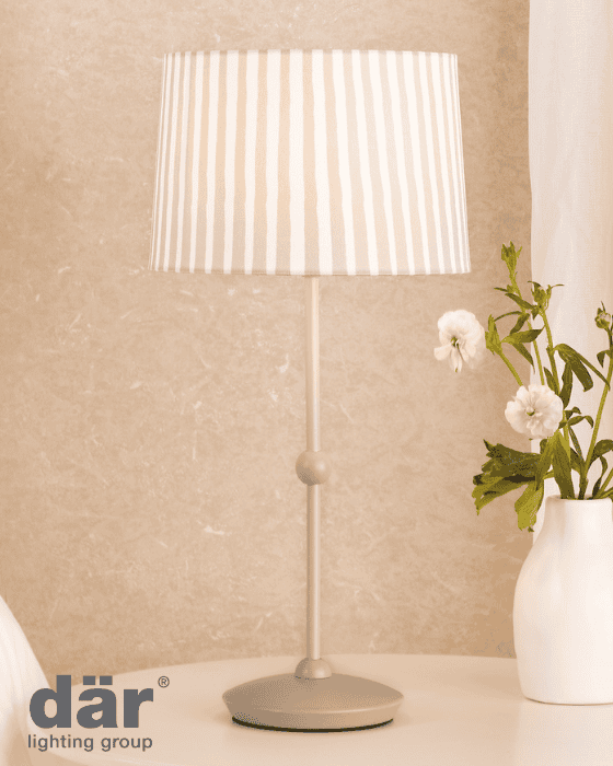 Illuminate your space with understated elegance using the Sosa table lamp from dar lighting. This unassuming contemporary table lamp boasts a sleek matt taupe finish that effortlessly complements any decor style. The matching striped shade adds a touch of visual interest while maintaining a cohesive look. Perfect for creating a warm ambiance in your living room, bedroom, or home office, this versatile lamp brings a modern flair to your lighting setup. The convenient inline rocker switch makes it easy to turn on and off, so you can adjust the mood of your room in an instant.