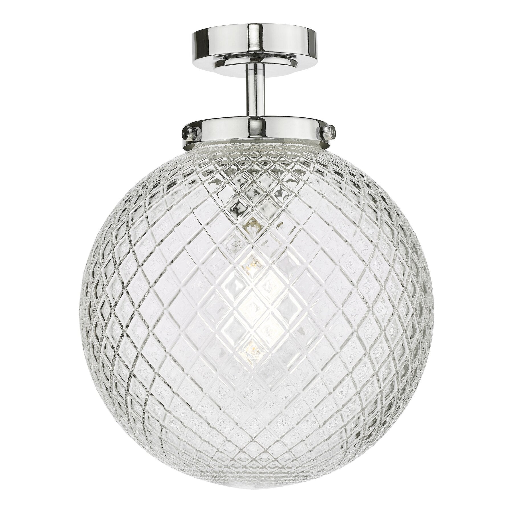 Dar Lighting Wayne Bathroom IP44 Polished Chrome & Textured Glass Semi Flush
