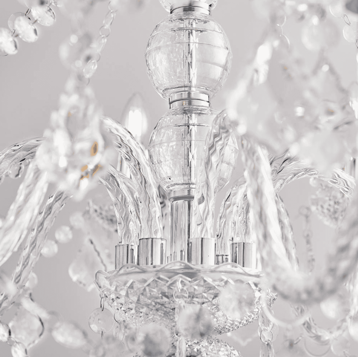 Chrome plated metalwork with high quality clear acrylic beading, facets and droplets