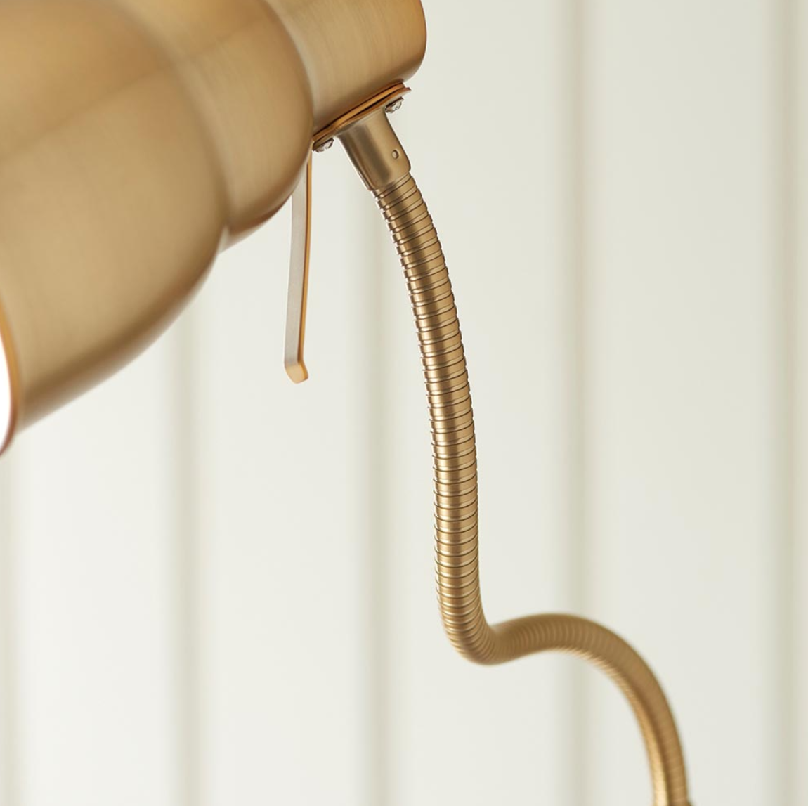 Ideal for both classic and modern interiors, this reader floor lamp sits perfectly beside a sofa or armchair. Its fully adjustable, flexible arm lets you direct light exactly where you need it, while the brushed aged brass finish and easy‑reach rotary switch add a refined touch.