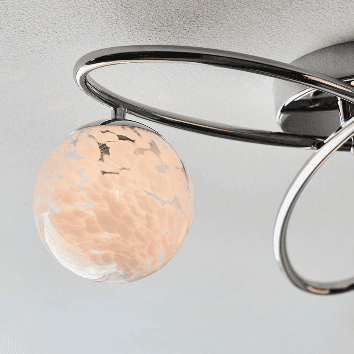 Chrome finished metalwork with white confetti glass shades