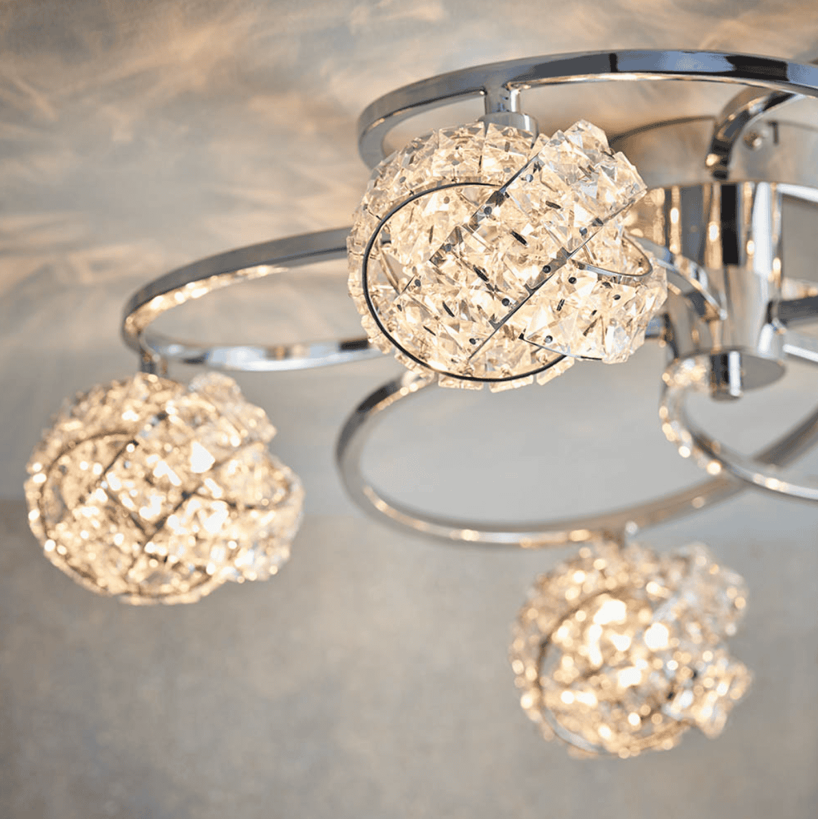 Endon Talia Chrome & Glass Crystal Cluster 5 Light Semi Flush