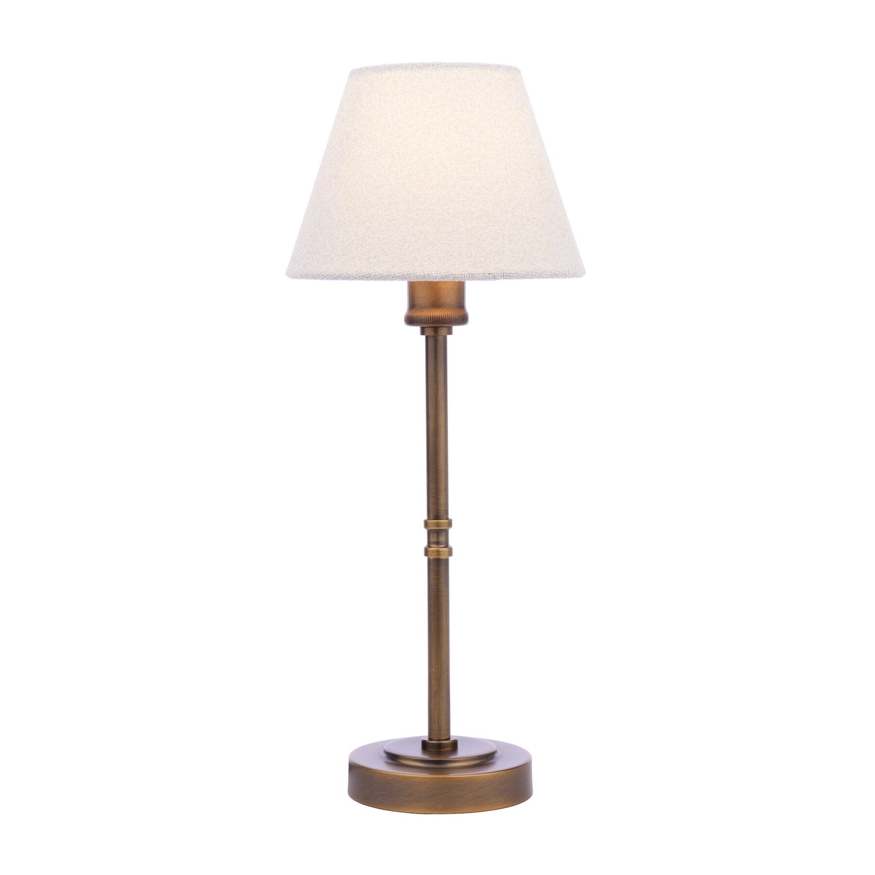 Elevate your living room or bedroom with the Laura Ashley Denston Table Lamp. Its warm cream boucle shade and antique bronze finish make it a stylish statement for any bedside or side table. Offering a soft, inviting glow and convenient touch on/off control, it pairs perfectly with other pieces in the Denston Lighting Collection. Complete with a Natural Fabric Empire shade.