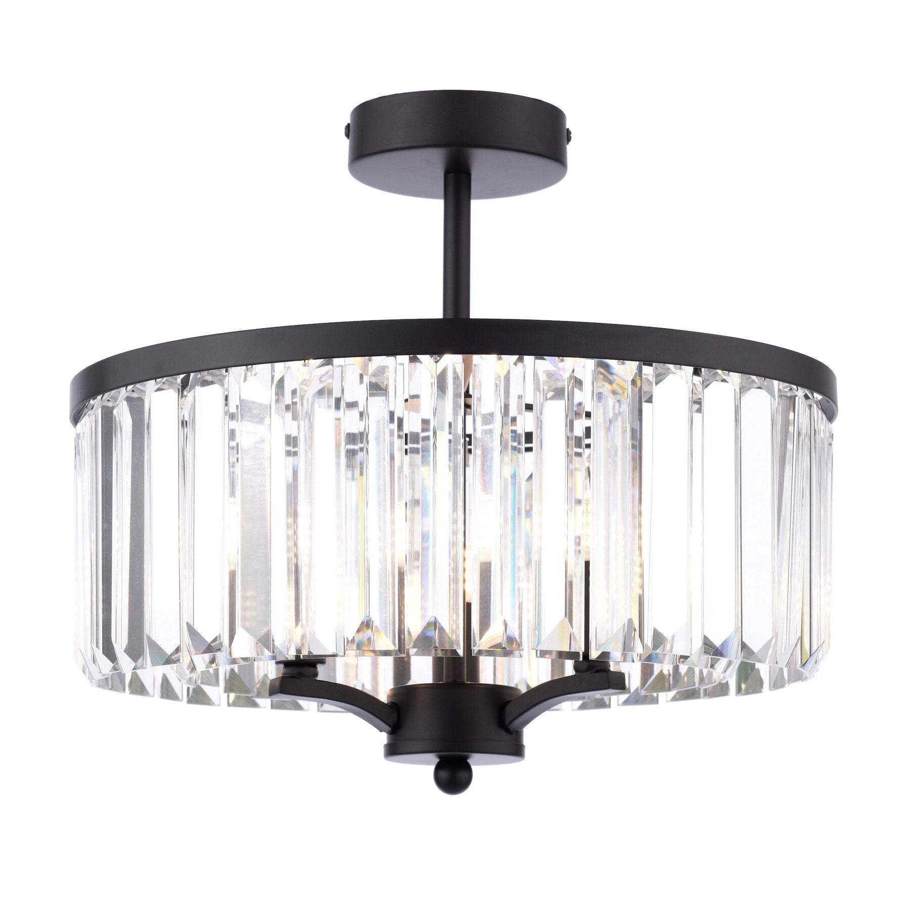 Laura Ashley Elkwood 3 Light Crystal & Black Semi Flush