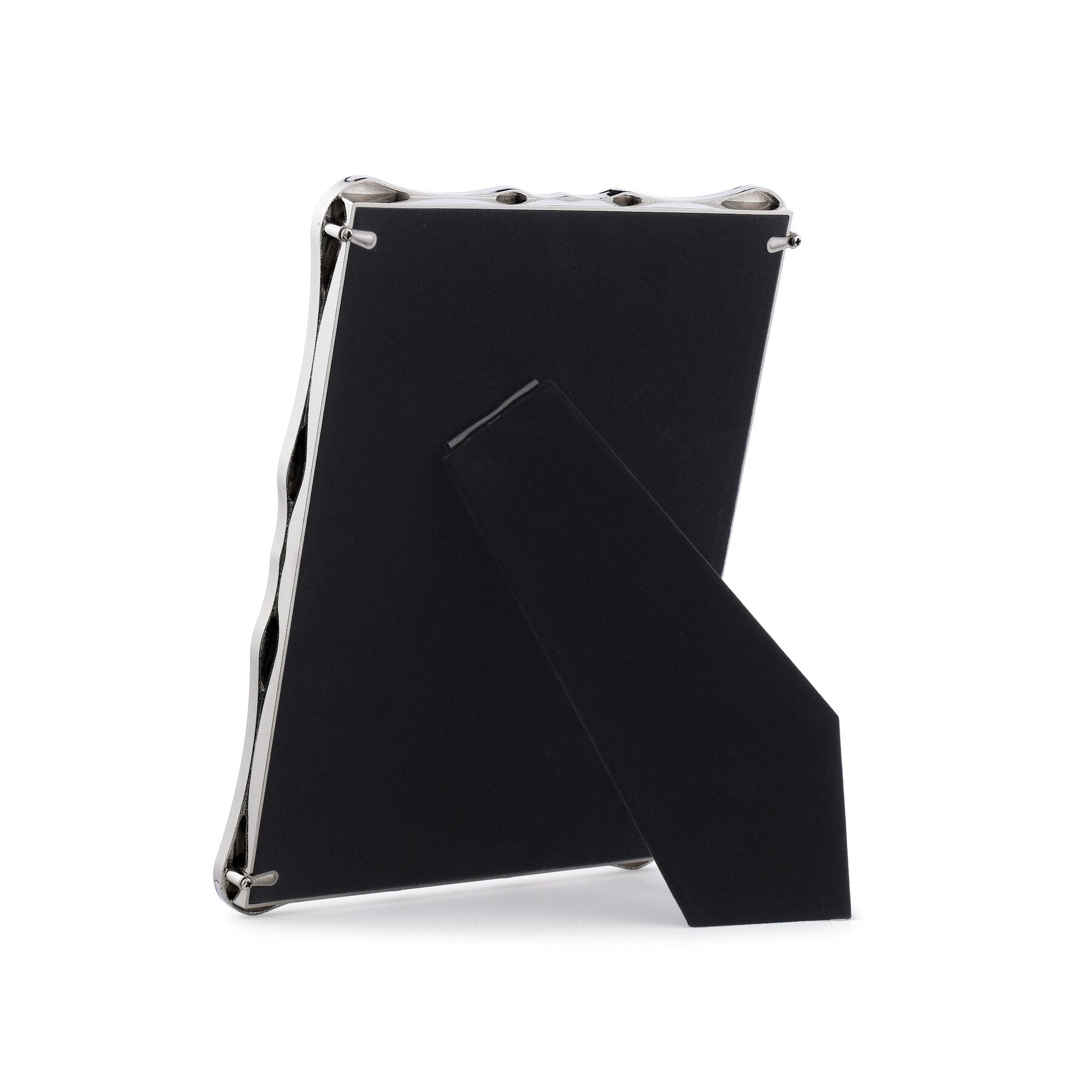 Timeless elegance meets modern craftsmanship with the Glasbury Photo Frame in Polished Nickel (5" x 7") by Laura Ashley. This beautifully designed frame features a lustrous polished nickel finish and graceful Art Nouveau-inspired curves, making it a standout piece for any room. Its sleek silhouette is complemented by a luxurious black velvet backing, adding a refined touch to your cherished memories.