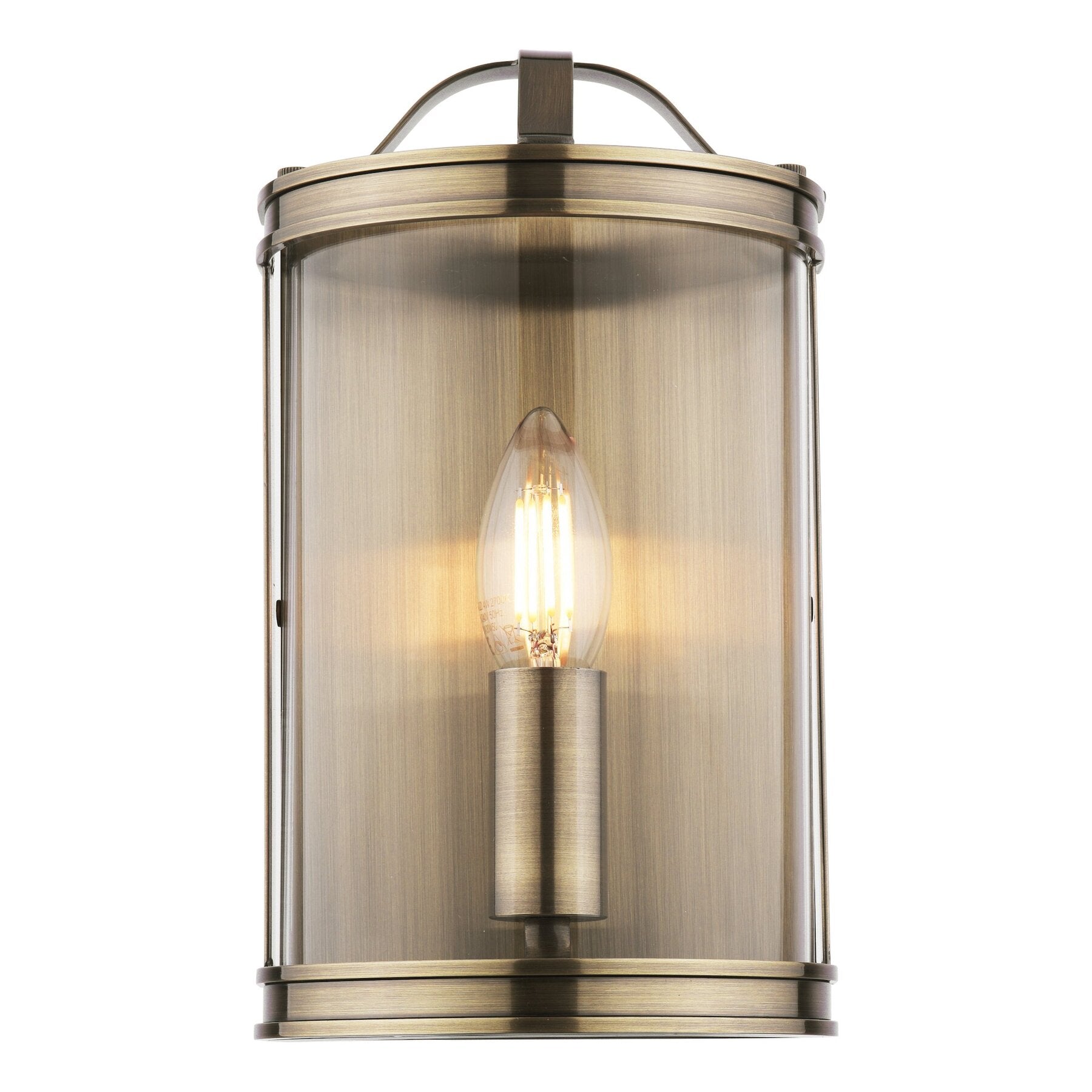 The Laura Ashley Harrington Wall Light brings a contemporary touch with its clean lines and elegant blend of clear glass and antique brass. Stylish and refined, it makes a striking addition to any modern space.