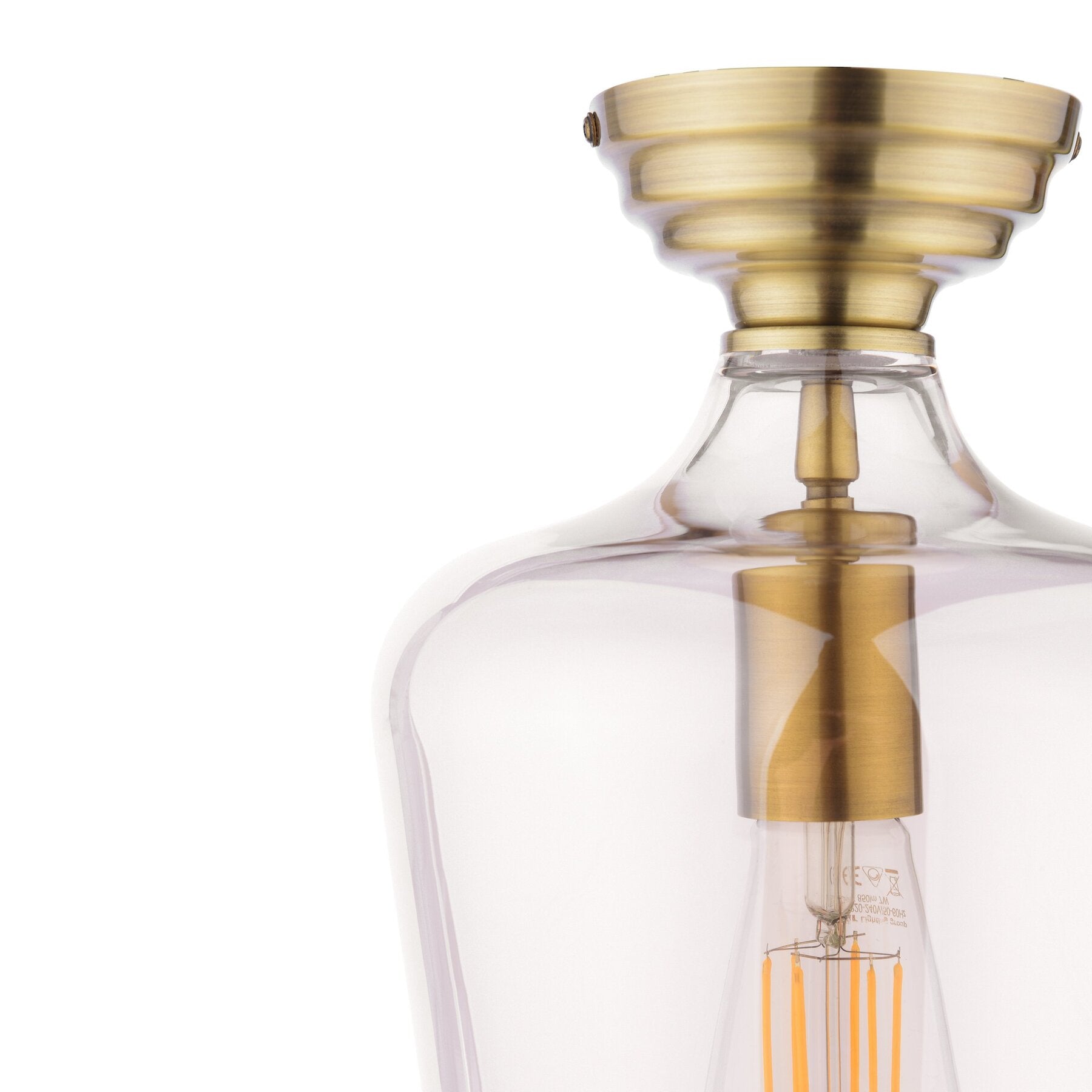 Laura Ashley Ockley Antique Brass & Champagne Glass Semi Flush