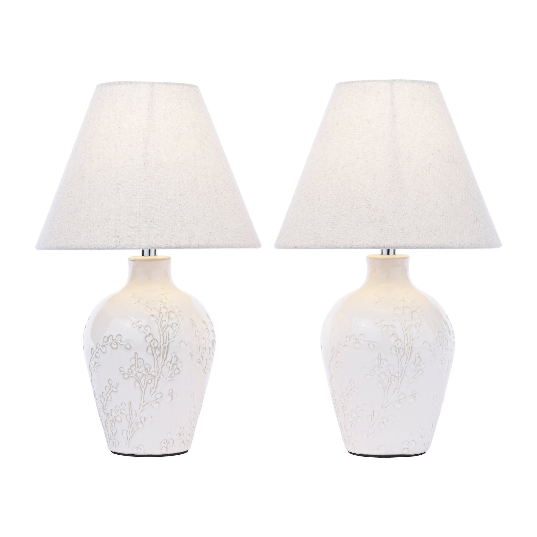 Enhance your décor with the elegant Pussy Willow twin pack of table lamps. Featuring delicate branches of Pussy Willow, these beautiful lamps are perfect for creating a warm and serene living space. The Pussy Willow table lamps come complete with a natural linen coolie shade. Please note, the bulbs are not included, and each lamp requires 1 x 40W max SES GB. The lamps are dimmable when paired with suitable bulbs.