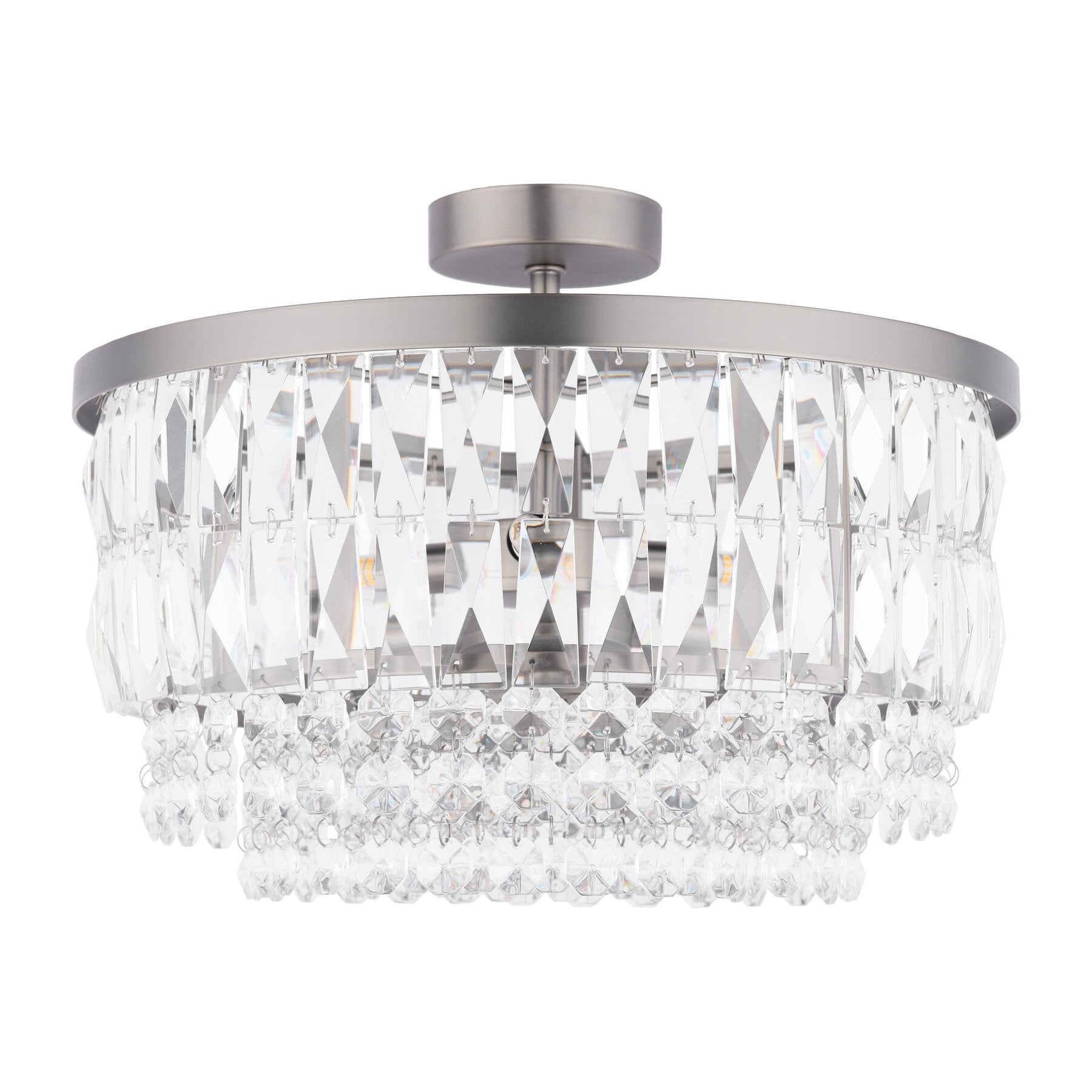 The Rhosill Semi Flush Light by Laura Ashley features stunning faceted glass crystals with gorgeous pewter metal accents. This semi flush fitting is ideal for low ceilings and small rooms, providing a neat finish with no visible cables. This statement ceiling light would complement any room. Please note, the bulbs are not included and it requires 3 x 33W max G9. The light is dimmable when paired with suitable bulbs.