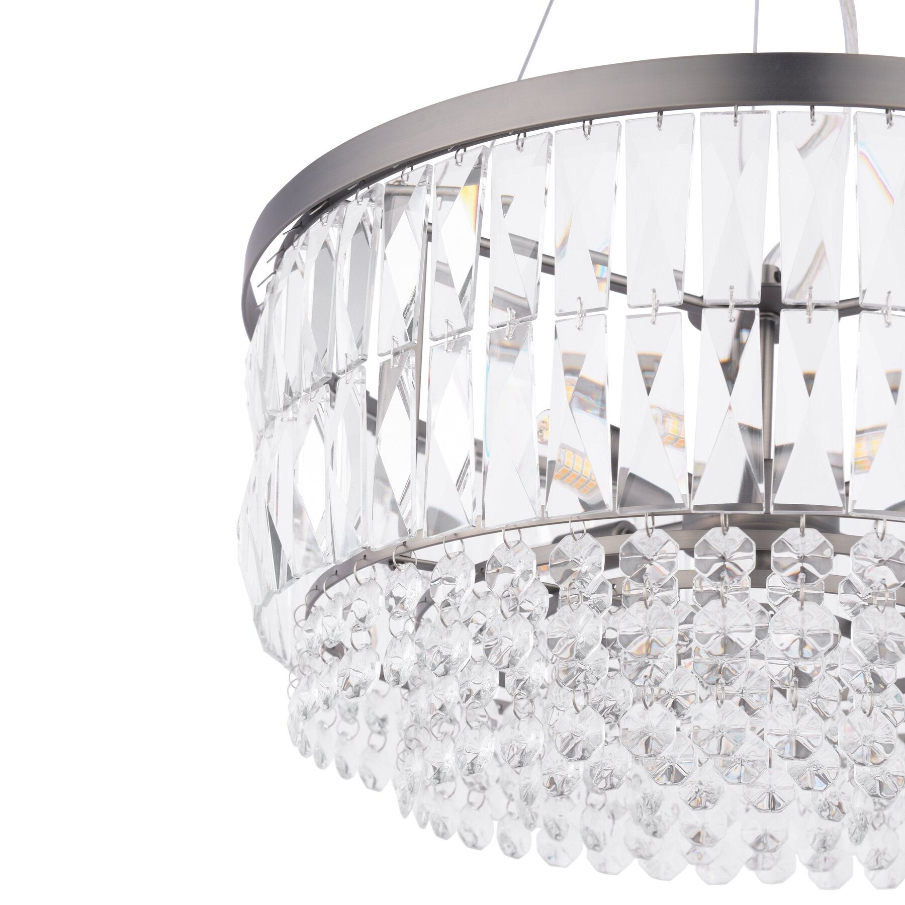 The Rhosill Chandelier by Laura Ashley features stunning faceted glass crystals with gorgeous pewter metal accents, making it a statement piece for any room. The height is adjustable at the point of installation (60-130cm) to fit your space perfectly. Please note, the bulbs are not included and it requires 4 x 33W max G9. The chandelier is dimmable when paired with suitable bulbs.