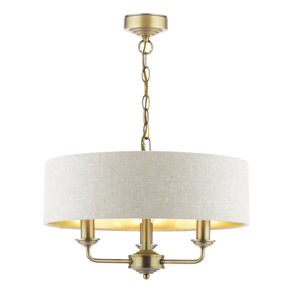 Laura Ashley Sorrento 3 Light Matt Antique Brass Chandelier with Natural Shade
