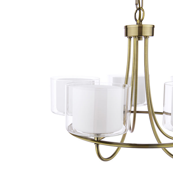 Laura Ashley Southwell 5 Light Antique Brass & Opal Glass Armed Pendant