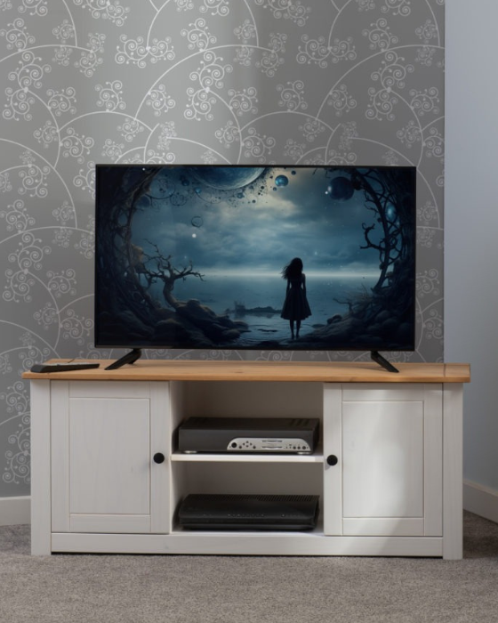 Panama 2 Door 1 Shelf White & Natural Wax Flat Screen TV Unit