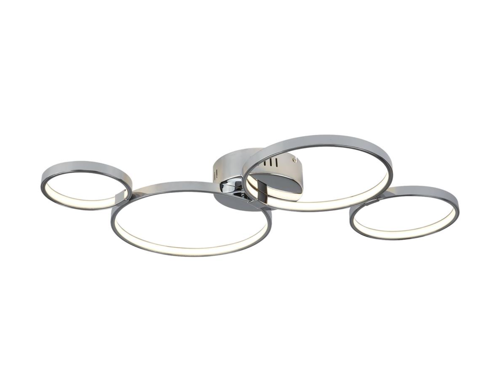Elevate your lounge area with the Solexa 4-light ring flush ceiling light. The rings, varying in size, are elegantly attached to a chrome base, creating a sophisticated focal point on your ceiling. With lights pointing in different directions, this fixture ensures a generous spread of illumination throughout your home. Plus, LED lights use up to 75% less energy and last up to 20 times longer than incandescent bulbs, making it an eco-friendly and cost-effective choice.