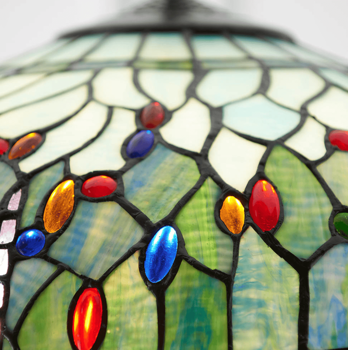 Hand crafted tiffany style glass shade with satin black painted metal work