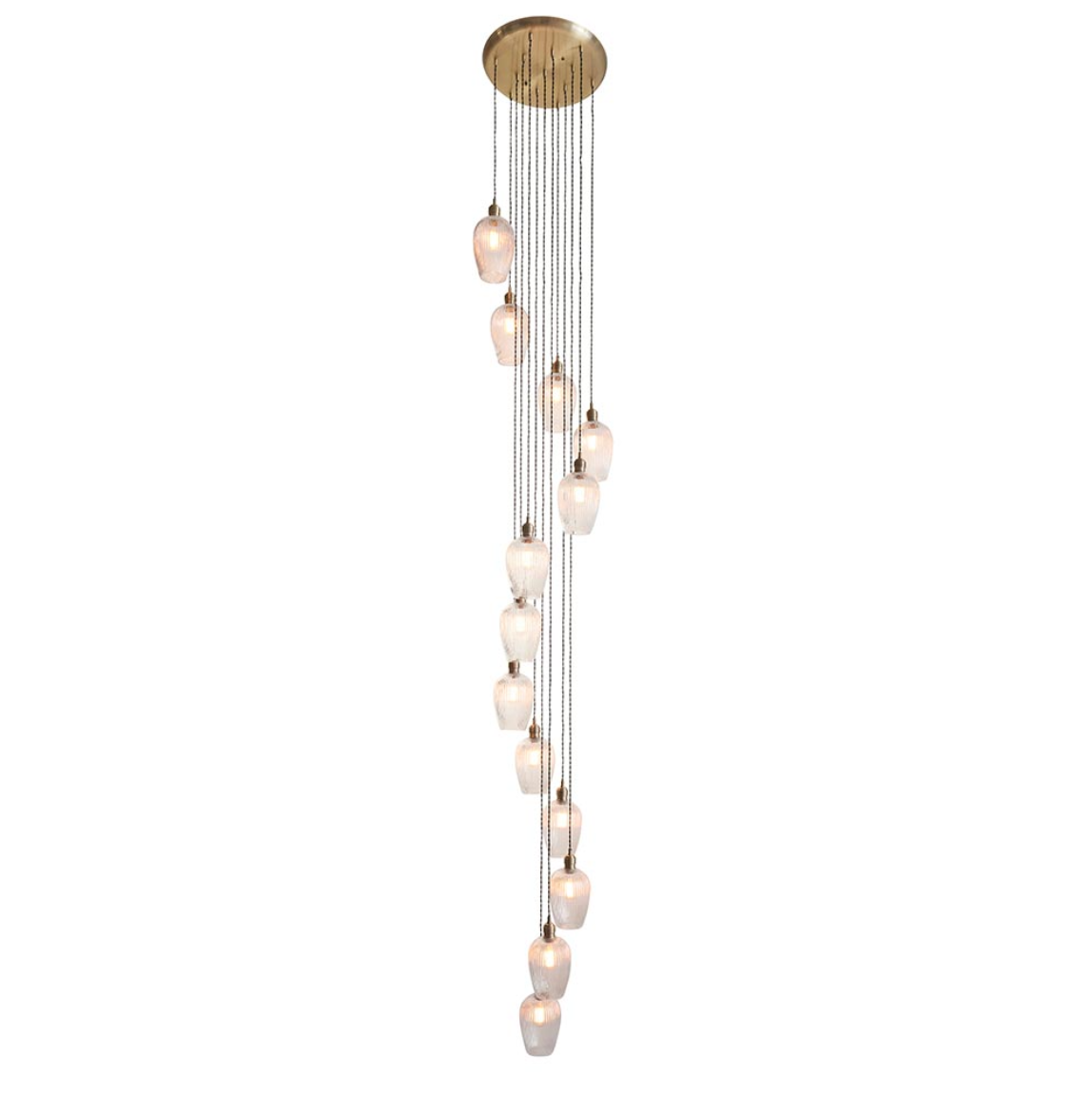Vesilo Lighting Ares 13 Light Antique Brass & Clear Ribbed Glass Cascade Pendant