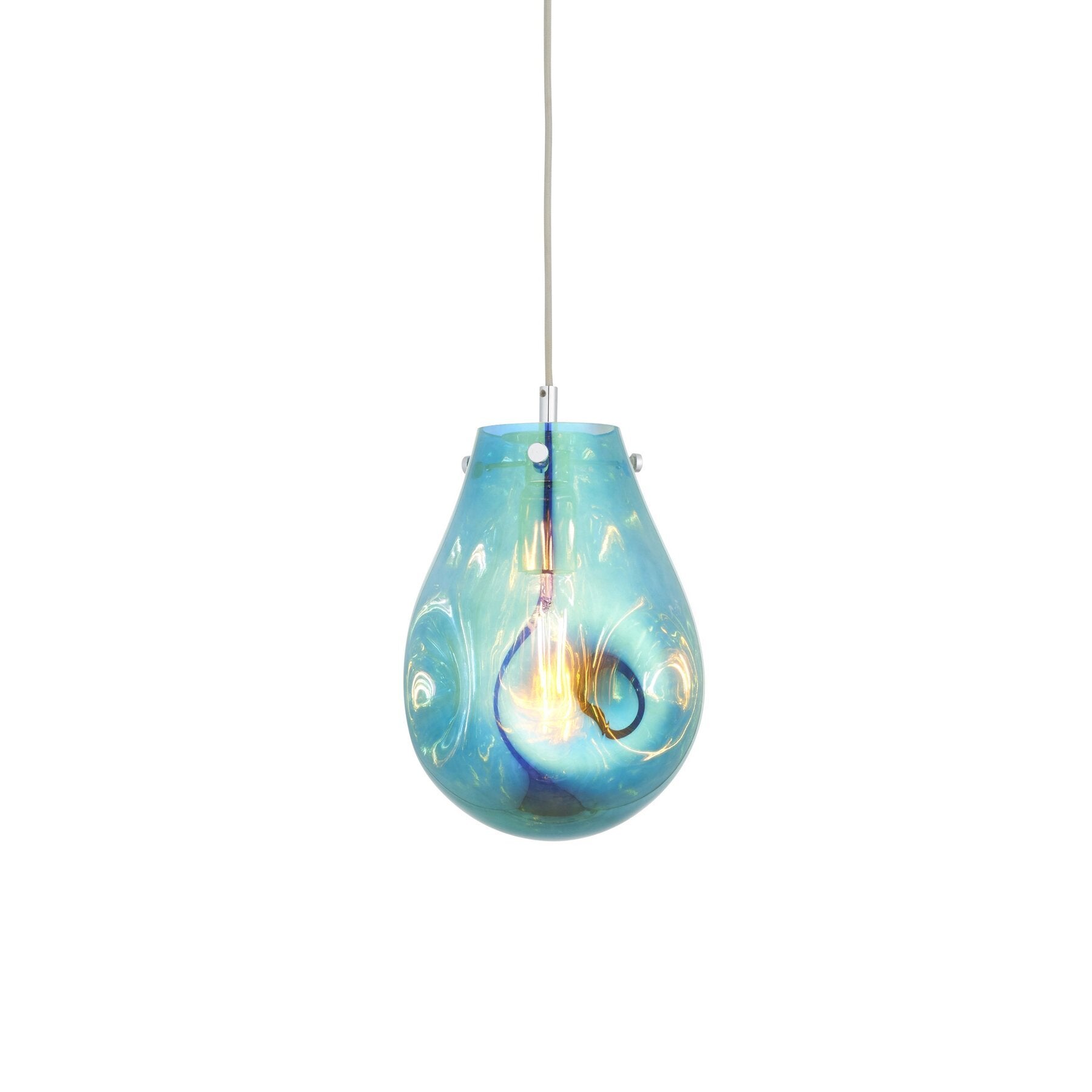 Transform your space with the captivating elegance of our petrol-hued molten glass pendant, accented by sleek chrome-plated metalwork. Its fluid, organic silhouette and shimmering metallic glass tones bring a sense of movement and modern sophistication. Pair with coordinating pieces from the collection for a bold, unified design statement.