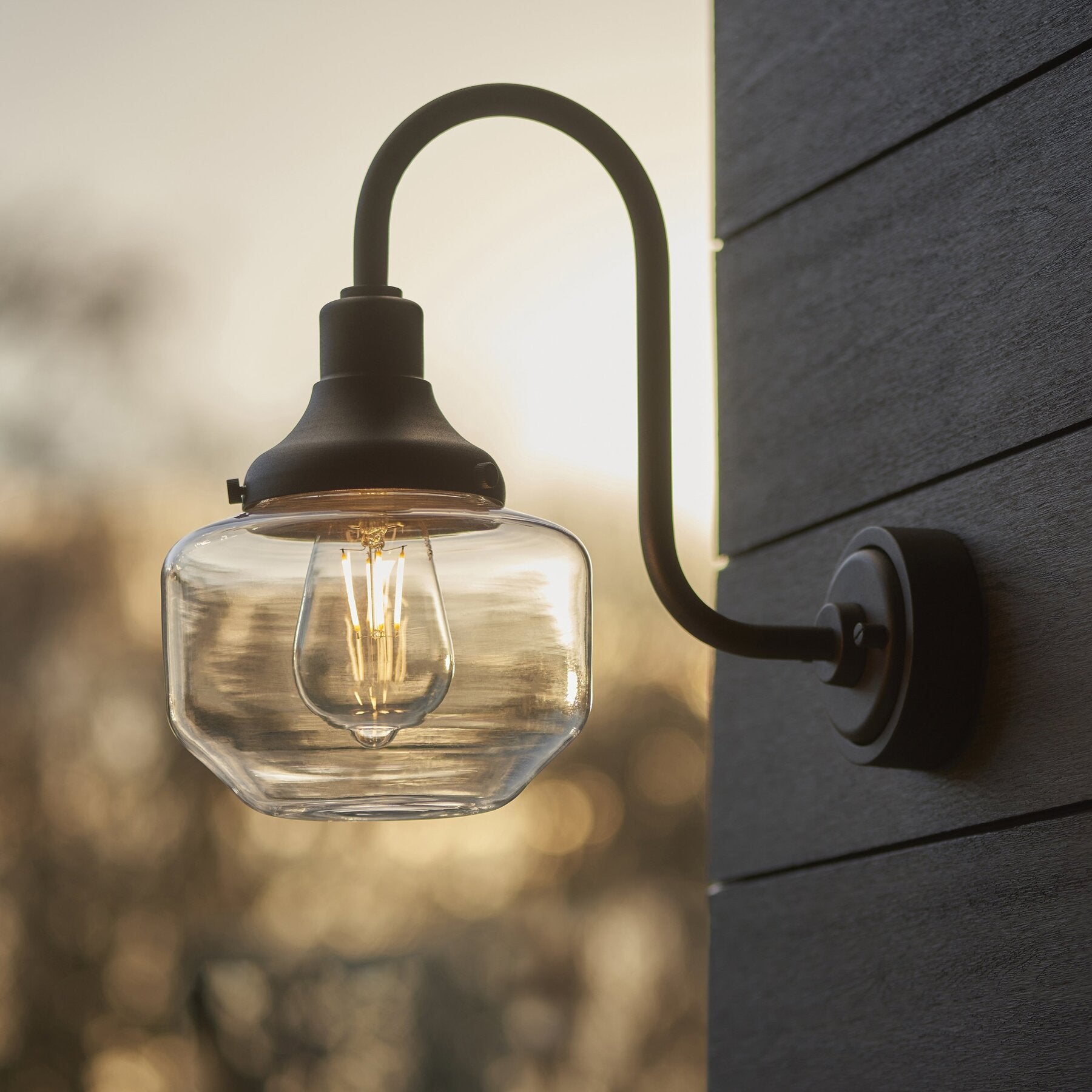 Featuring a distinctive curved silhouette in a refined matt black finish, this lantern combines timeless appeal with modern simplicity. Its enclosed clear glass shade enhances both form and function, casting a welcoming glow while protecting the bulb. Versatile in style, it complements retro, traditional, and contemporary exteriors alike, perfect for adding character and charm to any outdoor space.